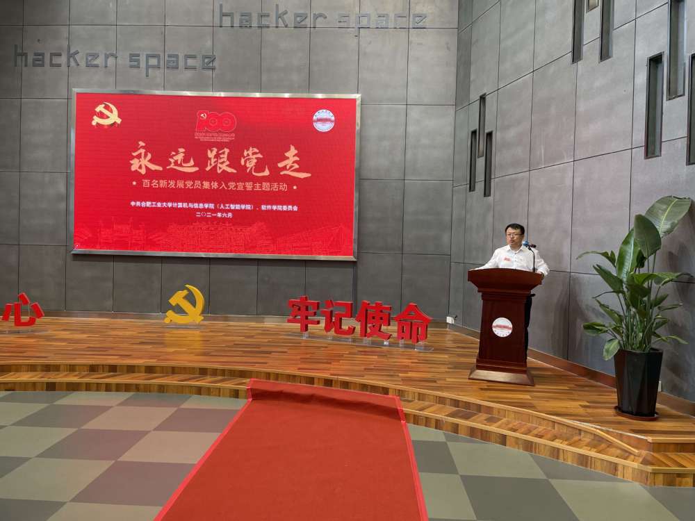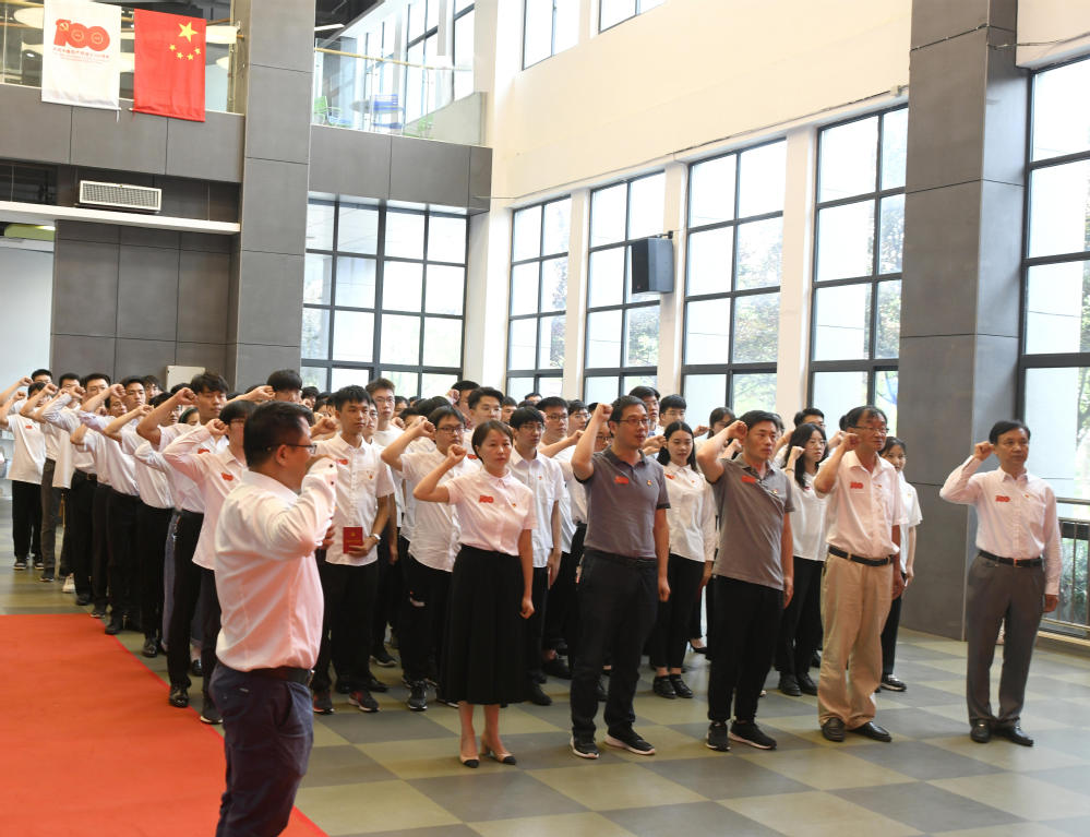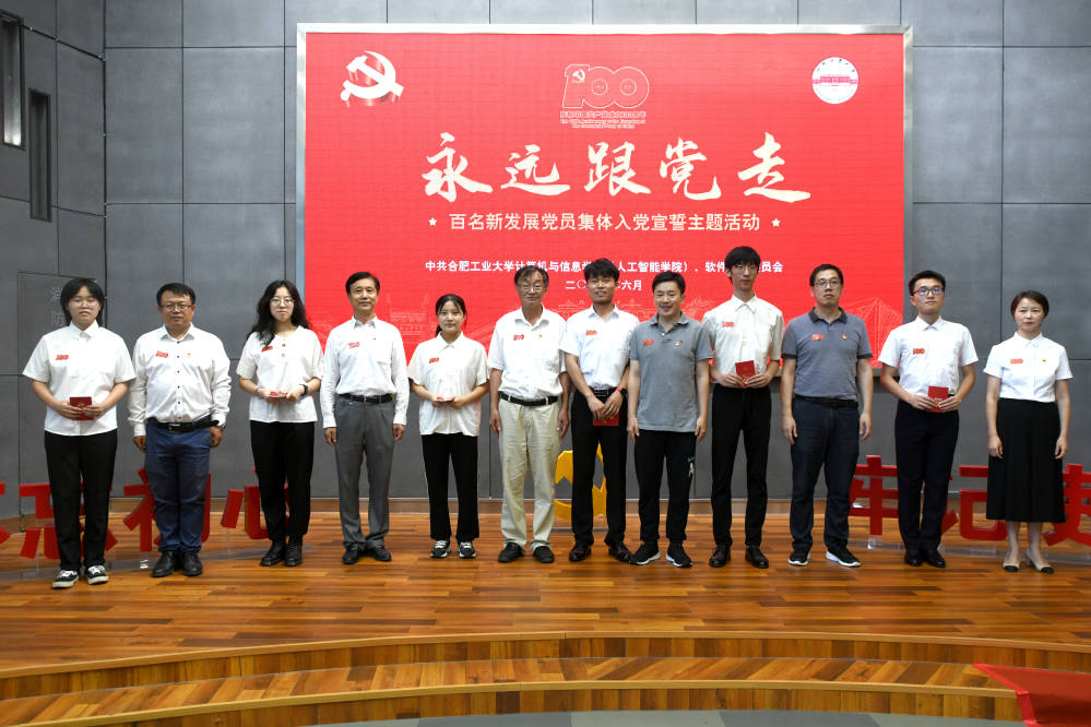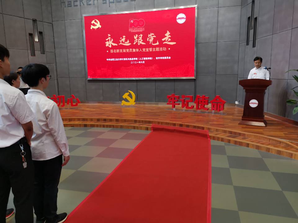 为庆祝中国共产党成立100周年,激励新发展党员不忘初心跟党走,砥砺奋进新征程,6月30日下午,beat365中国唯一官方网站(人工智能学院)、软件学院组织开展了“永远跟党走”百名新发展党员集体入党宣誓仪式。学院相关辅导员、2021年新发展党员参加了集体入党宣誓仪式。
