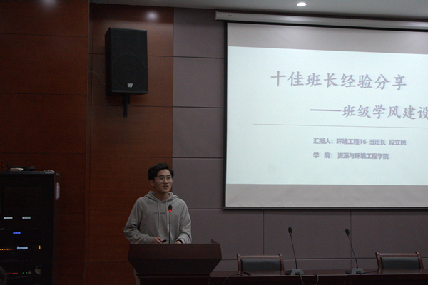 我校“十佳班长”代表电气与自动化学院刘志远、资源与环境工程学院段卫东、土木与水利学院段立民、化学与化工学院樊江分别从班级活动的开展、自我能力的提升,优良学风的营造和班级凝聚力的建设作经验分享。四位优秀的班长在班级工作开展中都有独到的见解,从培训营的团体活动谈班级建设的方法,从培训期间学员们参与感受谈换位思考的重要性。