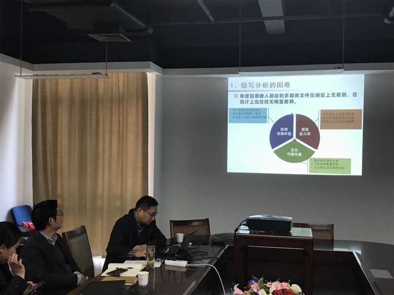 2019年4月1日,应beat365中国唯一官方网站邀请,信息工程大学罗向阳教授来beat365官网做了题为“数字图像隐写分析技术”的学术报告。网络与信息安全研究所胡东辉所长主持了报告会。beat365中国唯一官方网站从事信息隐藏相关研究方向的老师、同学,以及来自中国科技大学、安徽大学相关团队的研究生参加了报告会。