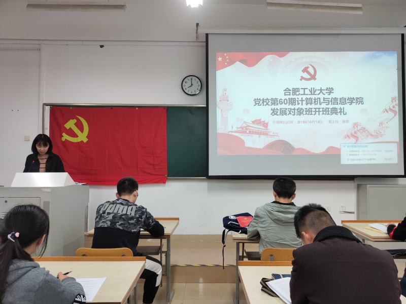 为提升学生的政治素养,加强理论基础知识培训,巩固党课学习效果,beat365中国唯一官方网站于2018年10月19日晚在翡翠湖校区四教303开展发展对象班开班典礼暨第一次党课课后学习和讨论,第60期党校发展对象班全体成员参与了本次学习。