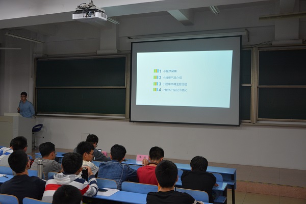 宣讲会伊始,学院团委书记黄晨老师对到场嘉宾和本次大赛进行了简要的介绍,并鼓励到场同学积极参赛,将所学理论转化成实际操作和成果。随后朱世威和张维分别对比赛的整个规程赛程和微信小程序产品进行了相关介绍,针对性的对本次竞赛的参赛对象,报名形式,参赛作品,评分标准,赛区选拔,奖项设置进行了详细的介绍,同时对于目前较为火爆的小程序如摩拜单车、王者荣耀等进行了产品剖析和设计解读。在场同学们热情高涨,也纷纷提出了相关问题,对本次竞赛也有了较为清晰的认识。