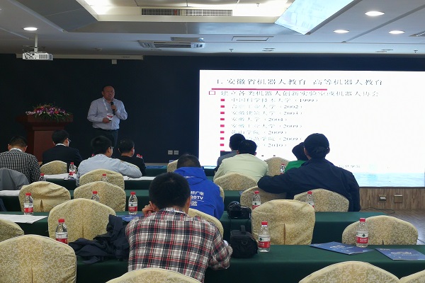 在本次国家机器人发展论坛上,郑南宁院士、吴宏鑫院士、王天然院士等近50名知名专家、行业精英报告了机器人技术未来的发展方向、新技术、成果和产业最新动态。论坛分主论坛、医疗机器人论坛、共融机器人论坛、教育机器人论坛和AI机器人应用创新论坛。beat365官网方宝富老师作为特邀嘉宾,在教育机器人论坛上报告了我校自2002年以来的机器人创新教育课程和课外创新活动体系建设成果和在安徽省的推广经验,同时报告了以我校为主要依托的安徽省机器人竞赛活动的开展情况。