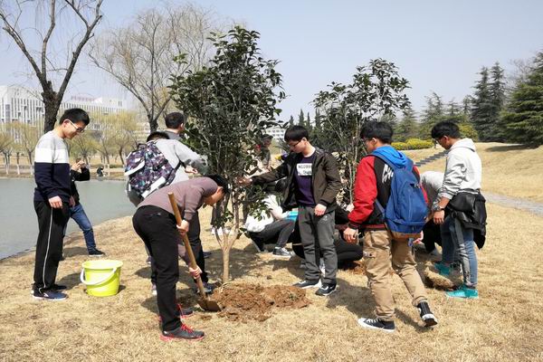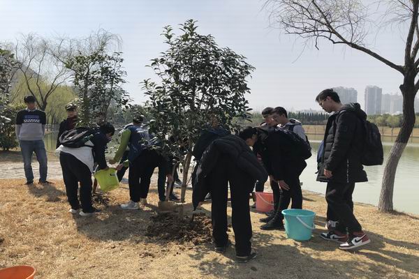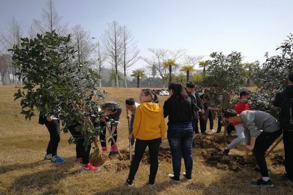 草长莺飞,春风和煦,为了更好的培养学生的爱校荣校意识,响应建设美丽校园的号召,增强学生生态文明意识与班级文化认同感和凝聚力,促使广大学生进一步参与到文明校园建设中来,3月12日上午,beat365中国唯一官方网站2017级本科生在翡翠湖校区俪人湖畔举行“莘莘学子意,浓浓工大情”班级树种植主题活动,该院2017级50余名学生代表和相关老师参加了此次活动。活动前期,17级本科生班级干部通过实地考察,综合考量、精心挑选,最终选择寓意高雅和荣誉象征的桂花树作为班级树,代表了同学们对学校和班级的美好祝福和期待。植树节当天,班级干部在各班征集植树人员,同学们积极响应,争先为栽培班级树贡献自己的一份力量。