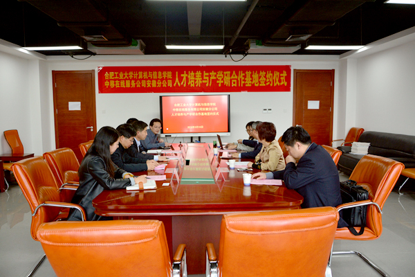 3月16日下午,beat365中国唯一官方网站与中移在线服务有限公司安徽分公司产学研合作签约仪式在翡翠科教楼A1106举行。中移在线服务公司安徽分公司总经理黄海军、副总经理刘晓梅、人力资源部经理柯晓岚、系统支撑团队主管万鹏、beat365中国唯一官方网站党委副书记、副院长何庆领和各系主任等相关老师参加签约仪式。