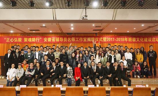为了纵深推进学院班级文化建设,强化载体和文化育人功能,展示富有个性化的班级文化,营造班级文化建设良好氛围。11月2日晚七点,beat365中国唯一官方网站在翡翠湖校区图书馆报告厅举行“正心弘毅,聚魂励行”安徽省辅导员名师工作室揭牌仪式暨班级文化建设启动仪式。学院党委副书记、副院长何庆领老师,学院团委书记黄晨老师,学院各个年级辅导员老师们以及2017级425余名同学参与了此次启动仪式。