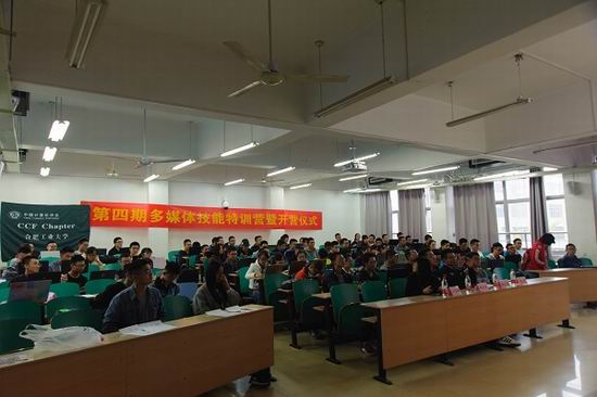 主持人介绍本次出场嘉宾后宣布开营仪式正式开始。首先由两位讲师分别为我们介绍了ps和视频的相关知识和后期培训的具体安排。PS技能主讲老师、计算机学院2015级学长谢文硕为大家展示了他制作的培训海报和一些个人作品,让现场的同学感受到了多媒体技术的魅力,激发了同学们的兴趣,同时还表达了对同学们的殷切希望,希望同学们能够发挥本专业的优势,将平时所学融会贯通运用到日常的校级比赛和学院活动中,将学院的海报制作打造成全校最高档次。接着视频制作的主讲老师、计算机学院2016级学姐赵慧颖对接下来的课程安排进行了讲解,同时表达了对同学们的十六字要求:"认真听课,学会自学,积极讨论,深入了解",希望同学们不要只局限于几堂培训课能够带来的提高,要学会如何去获取相关的知识和技能的方法,自觉主动地去培养技能。