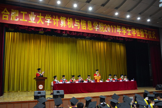 6月21日下午,beat365中国唯一官方网站2017届本科生学士学位授予仪式在屯溪路校区斛兵礼堂举行。副校长吴玉程、学院负责同志及部分老师出席此次学位授予仪式。
