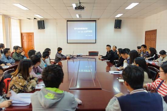 首先张老师向同学们介绍了读书日的来历和目前全国以及本校的读书概况。通过精确的数据说明了目前全国每年人均读书量仍有较大的发展空间,例如2016年全国人均读书7.86本,阅读纸书时间20.20分钟,手机阅读则为74.74分钟。根据这样的数据,张老师又从读书的意义,即为什么要读书开始讲述。张老师从两方面谈起,读书是人的生存之道,可以增强人的本领,提高学习能力,还关系到国家、民族的兴衰成败。其次是书能点亮人生,是大学生实现青春梦想的必经之路。之后张素叶老师从“读哪些书”角度入手,推荐同学们多读那些有闪光思想和高尚语言的书,多读那些经过时代淘汰现在仍然巍然保留下来的书,比如马克思主义经典著作、中外历史以及经典文艺作品 。最后张老师以“怎样读书”结尾,借用习近平总书记的话——有目标,有恒心,有效率,有质量来建议大家在读书的过程中做到“学,思,记,用”,认真思考,记读书笔记,学以致用,让读书成为一种习惯。同学们还就如何进行读书笔记的记录等问题与张老师进行提问与交流,现场气氛十分活跃。