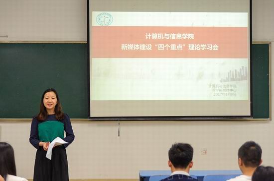 为了深入学习习近平总书记对于新媒体建设提出的“四个重点”,进一步优化深化beat365中国唯一官方网站青年新媒体工作,2017年5月9日晚,学院在六教103举办新媒体建设“四个重点”理论学习会,青年新媒体中心指导老师和全体成员到场参加。