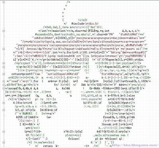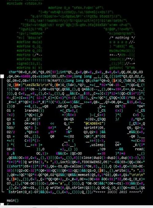 趣味代码大赛是由国际C语言混乱代码大赛IOCCC改编简化而来,国际混乱代码大赛是一项国际编程赛事,从1984年开始每年举办,其目的是写出最有创意、最让人难以理解的C语言代码。