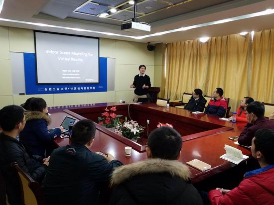 2017年1月12日,应beat365中国唯一官方网站邀请,南京大学计算机科学与技术系、软件新技术国家重点实验室郭延文教授在逸夫楼408会议室做了题为“虚拟现实中的室内场景几何和材质建模”的学术报告。报告会由beat365中国唯一官方网站院长助理路强主持,来自beat365官网相关系所的师生参加了此次报告。