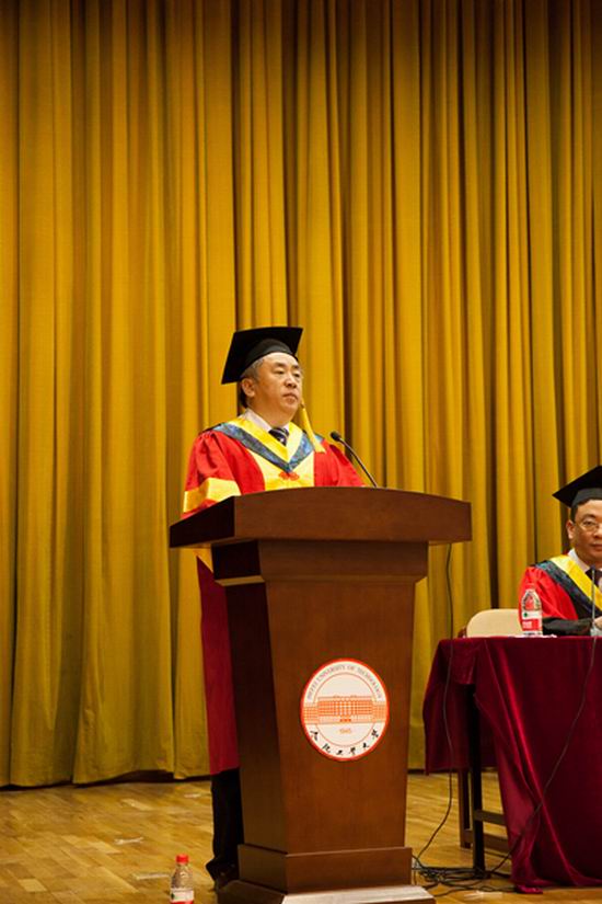 吴玉程副校长代表学校对获得学士学位的同学表示祝贺,并对毕业生在以后的学习工作生活中提出了四点希望:一、静以修身,俭以养德。希望毕业生以社会主义核心价值观坚定自身的信念,不断提升自己的价值选择,价值判断,与价值塑造的能力。二、勿忘初心,方得始终。希望毕业生要坚持自己的人生理想与目标方向,一如始终地不断奋斗,不断求索,才能自我实现,继而自我超越。三、锲而不舍,金石可镂。人生需要储备,只要坚持努力,脚踏实地的努力与付出终将收获。四、天下兴亡,匹夫有责。希望毕业生将来能够担当社会责任,凭借自己的聪明才智和所学知识,回报社会、报效祖国,为国家和民族的兴旺富强做出自己应有的贡献。最后,他寄语全体毕业生脚踏实地,敢于担当,勇于探索,争做数据交互的领航者,成为学校的骄傲!