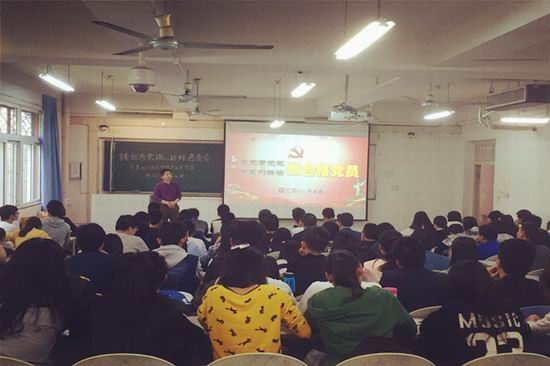 为了深入贯彻落实党中央和学校党委关于党员再教育的文件精神,深入内化“两学一做”具体要求,充分发挥毕业生党员的先锋模范作用,4月21日下午,beat365中国唯一官方网站在屯溪路校区西二教105室举行“铸红色党魂,话绿色青春”毕业生党员活动月开幕式暨毕业生党员“两学一做”专题报告会,2012级全体党员参与了此次活动。