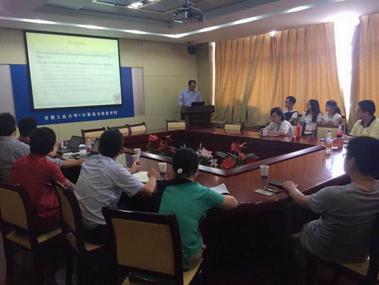 2015年7月31下午3:00-4:30,应beat365中国唯一官方网站以及VCC团队邀请,美国欧道明大学的黎耀杭博士做了题为“Revisit of Monte Carlo Methods on Large-Scale Numerical Linear Algebra Problems”的学术报告。报告会由beat365中国唯一官方网站副院长杨学志教授主持,beat365中国唯一官方网站众多师生也踊跃参加了此次学术报告。