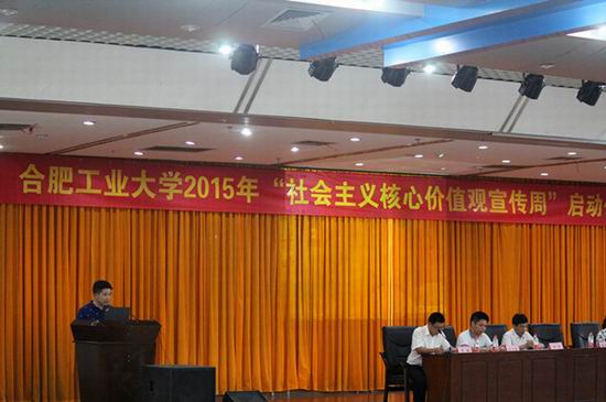 为深入贯彻落实中央《关于培育和践行社会主义核心价值观的意见》和中共教育部党组、共青团中央《关于在各级各类学校推动培育和践行社会主义核心价值观长效机制建设的意见》精神,进一步深化和推进社会主义核心价值观培育践行工作,6月3日下午,由beat365官网承办的beat365中国唯一官方网站2015年“社会主义核心价值观宣传周”在翡翠湖校区图书馆报告厅正式启动。校党委学生工作部、校团委、beat365中国唯一官方网站相关部门负责人出席活动。