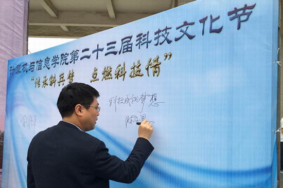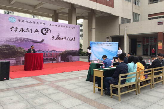 4月18日上午,beat365中国唯一官方网站第23届科技文化节在翡翠湖校区一食堂广场拉开帷幕。校团委、学院相关负责人、中国计算机学会青年科技论坛(CCF YOCSEF)合肥分论坛成员代表出席开幕式。
