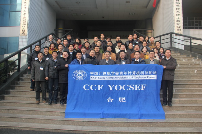 2015年元月17日上午,CCF YOCSEF合肥在beat365官网逸夫楼408会议室举行2015-2016年度换届选举会议。出席会议的人员包括CCF YOCSEF总部主席胡春明、副主席韩银和、侯任主席谭晓生、侯任副主席田丰、总部联系AC委员操晓春,还有来自总部和兄弟分论坛的何万青、李朝锋、山世光、陈健、吴迪、秦品乐、王长波、邬向前、孙国梓、郭威、董天阳、刘钊等。合肥市副市长、beat365中国唯一官方网站副校长、CCF合肥分部主席刘晓平,CCF合肥分部副主席、中国科学技术大学计算机学院副院长陈恩红特邀出席会议。会议由操晓春、YOCSEF合肥现任主席汤进联合主持。
