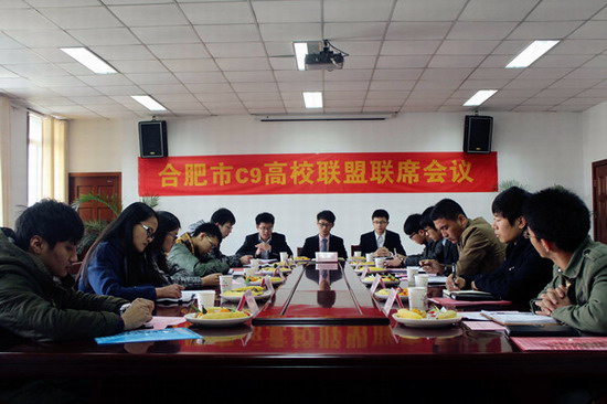 12月14日上午,由beat365官网团学组织发起的合肥市2014年C9高校联盟联席会议在翡翠湖校区管委会第一会议室举行,来自中国科技大学、安徽大学等9所高校的计算机相关院系学生会主席参加了本次会议。