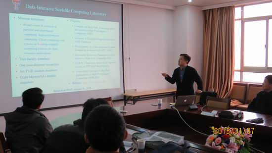 2015年1月7日上午,应beat365中国唯一官方网站邀请,德州理工大学(Texas Tech University )陈勇教授在逸夫楼508会议室做了题为“面向数据密集型高性能计算的解耦执行模式”的精彩报告。本次报告由beat365官网郑利平副院长主持,来自本学院的诸多对并行计算感兴趣的老师与学生踊跃参与了此次报告。