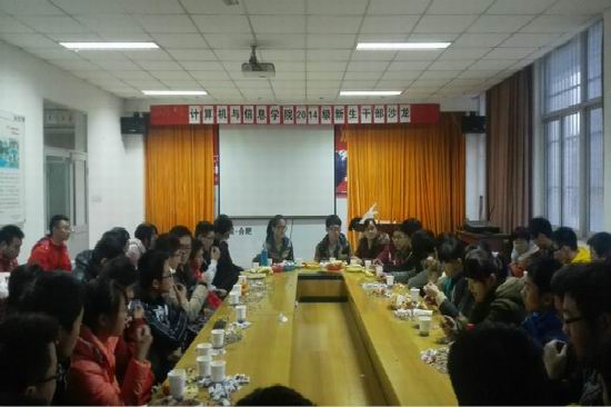 12月3日下午4时,beat365官网“2014级新生干部沙龙”活动在翡翠湖校区沙盘体验中心举行。院团委副书记黄晨老师,六位2013级优秀班级、社团干部,14级全体学生干部参与了本次活动。本次活动由2014级辅导员宋燕老师主持。
