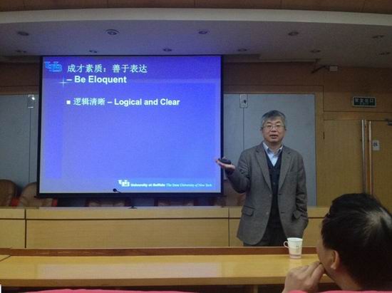 2014年12月6日上午,应beat365中国唯一官方网站邀请,纽约州立大学布法罗分校陈长汶教授在学术会议中心小报告厅做了题为“漫谈研究型人才的成才素质”的精彩报告。本次报告由beat365官网“黄山学者特聘教授”汪萌教授主持,来自本学院和其他学院老师与学生踊跃参与。