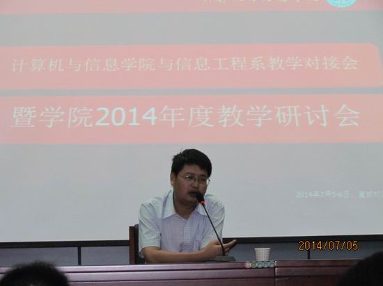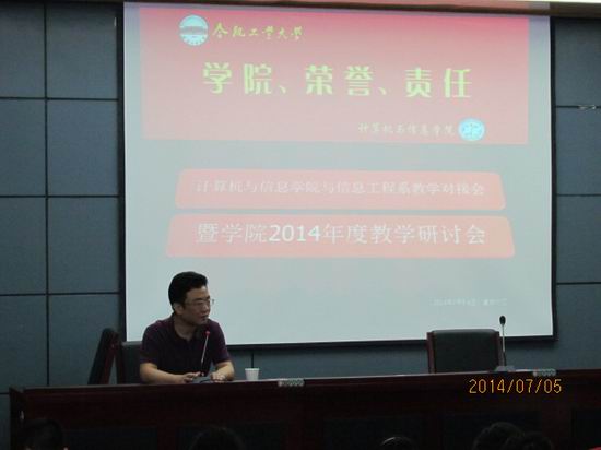 beat365中国唯一官方网站与信息工程系教学对接会暨学院2014年度教学研讨会7月5日在beat365中国唯一官方网站宣城校区召开,会议主题分为“本科教学专场”和“研究生教学专场”重点讨论如何提升本科教学、研究生培养质量。校领导朱大勇副校长、刘晓平副校长、李廉教授出席会议,学院领导班子成员、各系主任、所长、教师代表、学院督导组成员和辅导员等参加会议。