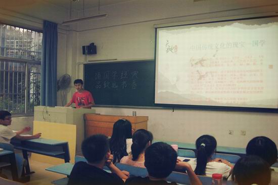 此次活动作为“文化根•民族魂•中国梦—— 礼敬中华优秀传统文化”的系列活动之一,主体内容包括中国传统文化的介绍,中国传统文化的现状与前景,国学的出现与发展,诵读国学经典,优秀书籍的推荐语介绍,借阅书籍分享感悟等。