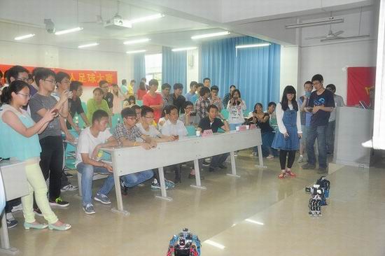 5月24日下午,beat365中国唯一官方网站第十届RoboCup机器人足球赛决赛在翡翠湖校区7教205成功举行。创新学院黄景荣院长、beat365中国唯一官方网站郑利平院长以及负责人方宝富老师到场观摩指导并参加了颁奖仪式。