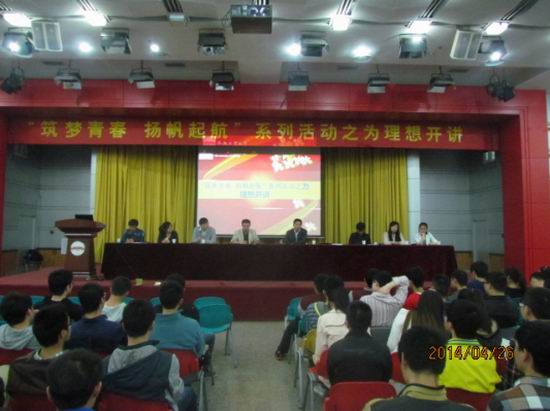 2014年4月26日上午9点在校东风报告厅,beat365官网举办的“筑梦青春,扬帆启航”系列活动之为理想开讲活动。beat365中国唯一官方网站副院长郑利平,院党委副书记兼副院长何庆领出席了此次活动,活动还邀请了 2010级优秀本科生代表,beat365中国唯一官方网站 2011级全体本科生参加此了次活动。