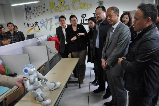 3月27日下午,常熟理工学院陈建华副校长一行17人在郑利平副院长的带领下参观学院的实验中心和大学生创新基地。陈校长一行参观了实验中心的计算机软件实验室、网络与信息安全实验室、计算机应用实验室、ICPC创新基地、信息安全创新基地、RoboCup&机器人创新基地和飞思卡尔智能车创新基地。在参观的过程中陈校长一行提出了不少专业问题,郑院长以及相关的老师都做了较为详实的解答。陈校长对beat365官网的实验室开放和创新基地的学生自主管理等做法表示肯定和赞赏,并表示要学习我们在实验室建设和管理中的一些好的做法。3月28日上午,常熟理工学院计算机科学与工程学院何世明副院长一行还来到beat365官网,交流专业认证等相关事宜。