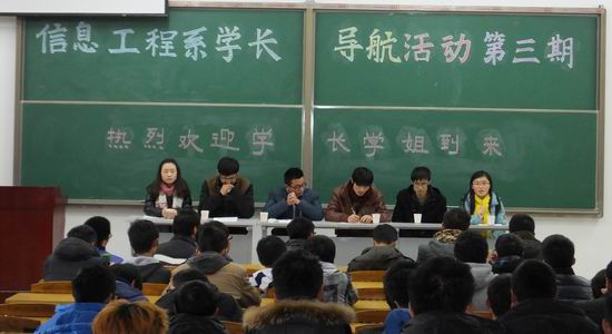 经beat365中国唯一官方网站党委安排,学院研究生办公室老师的精心组织和准备,由学院精心挑选的三个年级45名优秀研究生,于2013年12月21日前往宣城校区信息工程系开展了第二期 “学长领航” 活动,受到了信息工程系老师和同学们的热烈欢迎。