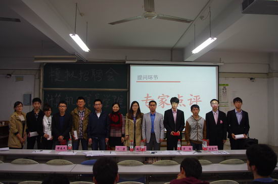 本次模拟招聘经验交流会前期通过简历筛选和笔试环节,最终脱颖而出十名同学成功进入面试环节。 活动现场营造出招聘会真实、紧张、激烈的情景,四名企业HR担任招聘会的面试官,通过无领导小组群面、HR单面以及经验交流互动三个环节。应聘者从容认真的态度、自信大气的陈述和评委们睿智深刻的点评赢得了同学们的阵阵掌声。