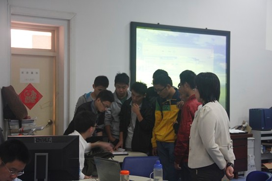 实验室为同学们提供了丰富多彩的展出内容,包括主动立体和被动立体漫游、基于Kinect和多点触摸屏的人机交互方式、动作捕捉仪和动画角色创新软件、全景相机和校园全景漫游软件、信息可视化软件、还有鱼眼镜头校正、队形控制仿真、线束系统、D A S系统等图形图像方面的软件。实验室精心准备的各种展示项目不仅为参观者带来了耳目一新的感受,各展区的解说同学也用平实易懂的语言深入浅出的介绍了各研究方向的研究内容,从原理上为大家做了透彻的解释。