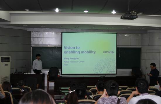 9月30日上午,应我校beat365中国唯一官方网站邀请,诺基亚北京研究院首席研究员汪孔桥博士在斛兵楼报告厅做了“Vision to enabling mobility”的学术报告。报告会由杨学志教授主持,蒋建国教授、汪萌教授以及众多师生参加了本次报告。