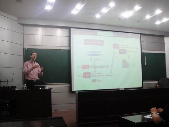 2013年6月15日上午9:00-11:00,哈佛大学医学院Gil Alterovitz教授在斛兵报告厅做了题为“国际生物信息学进展暨 去哈佛大学攻读生物信息学研究生:从合工大起步”的学术报告,介绍了他在生物信息学最前沿的研究成果和“iGEM”项目的相关工作,并对如何申请美国高校进行了介绍。报告会由beat365中国唯一官方网站副院长杨学志教授主持,beat365中国唯一官方网站众多师生参加了此次学术报告。Gil Alterovitz教授报告内容主要包括:(1)如何成功申请美国顶尖院校。他从多个方面介绍了如何为申请美国高校做准备,从GRE/TOEFL考试到简历书写、推荐信书写、英文学习等,提供了具体而有指导性的建议。(2)生物信息学的研究:Gil教授就他所在的生物信息学领域,详细介绍了他的一些研究思路和研究成果。(3)介绍了iGEM项目成立以来多年来取得的成果,并且对如何组建队伍参加iGEM大赛等问题做了详细介绍。Gil教授的报告深入浅出,报告内容引起了在座师生的浓厚兴趣。报告会后,参会师生分别就自己感兴趣的问题与Gil教授进行了交流互动,Gil针对问题做了详细的回答,报告会在热烈的掌声中结束。
