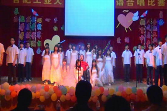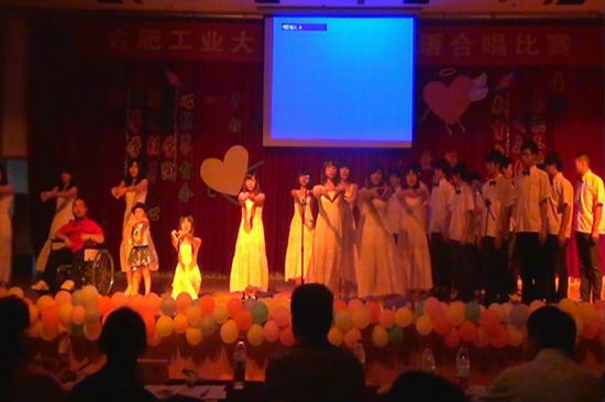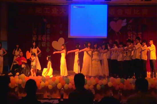 晚七点,手语合唱比赛在大家的期待中拉开帷幕,beat365中国唯一官方网站的参赛队伍更是在观众嘹亮的呐喊中登上舞台。参赛人员用整齐划一的手语,饱含深情的合唱,匠心独运的创意,深深打动着在场的各位观众与评委。比赛中,身残志坚的阳光轮椅男孩李可,用他激情昂扬的朗诵将节目推向高潮,节目尾声,六岁小朋友将爱心传递,节目完美落幕,赢得阵阵掌声。