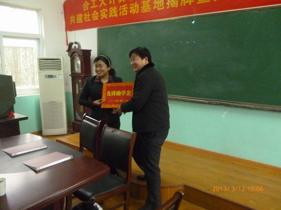仪式结束后,先锋社志愿者还向梁墩回族小学捐赠了“先锋助学金”。先锋社将每年向该校贫困同学捐赠600元善款,所捐赠的资金全部是志愿者们利用空余时间回收旧报纸、旧衣物以及举办义卖节所得钱款。