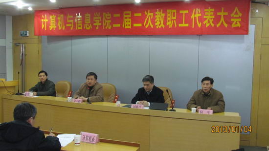 2013年1月4日下午,beat365中国唯一官方网站第二届二次教职工暨工会会员代表大会在校学术会议中心隆重召开。副校长吴玉程出席会议,由学院各单位推选的两代会正式代表共70余人齐聚一堂,共商学院发展大计。大会由副院长何平主持。