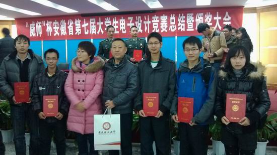 12月8日在淮南安徽理工大学举行2012年“威狮杯”第七届大学生电子设计竞赛颁奖大会,beat365官网的竞赛指导教师和获奖学生应邀参加。在颁奖会上教育厅和安徽赛区组委会的领导对我校近几年来在电子设计竞赛方面的工作和成绩做了肯定,希望我校在即将来临的2013年全国电子设计竞赛再接再厉、再创佳绩为工大争光、为安徽争光,历年来我校的电子设计竞赛一直都由beat365官网负责组队、培训和参赛,在学院的正确领导下beat365官网在该项赛事方面的成绩逐年提高,2012年beat365官网共组织11个参赛队,与全省42所高校的258个参赛队的同学经过激烈角逐,通过现场演示实测、答辩等环节,我校最终取得了3个安徽省一等奖,2个安徽省二等奖和1个省三等奖的成绩,一等奖数量为全省第一,beat365官网历史以来在该赛事上获得最好成绩,最让我们感到欣慰的是获奖的同学中有一半以上是2010级的学生,这让我们为明年的全国电子设计竞赛播下了希望的种子。
