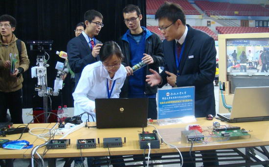 分布式控制研究所一贯坚持研究生培养与科研及创新相结合。魏振春、卫星等老师结合国家社会的需求和科研项目,带领研究生团队不仅夜以继日地在实验室完成大量研究,而且不顾盛夏的炎热和严冬的寒冷,把研究成果带到省内外的农业物联网示范基地试验应用。2011级研究生周培峰、周尧被选拔代表beat365中国唯一官方网站,带着“大学生创新与创业实践项目——设施农业物联网智能控制及个性化服务平台”应邀参展,该项目依托自行研发的“农业物联网综合服务平台”,以生产、仓储、物流、消费产业链为主线,服务于生产加工者、物流调度者、专家与学者、消费者、政策制定者等众多群体,已与安徽省农委等农业部门达成合作共识,并成功建成常州现代温室大棚集群试验点。参展期间,通过周培峰、周尧的精彩讲解、系统实物展示与动画演示的形式详细介绍了作品的功能、性能及商业前景,赢得了大家的称赞,获得组委会专家的好评。