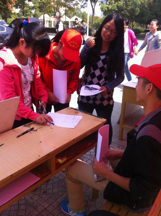 为弘扬中华民族敬老爱老的传统美德,让更多的同学参与敬老、爱老活动中。2012年10月18日,beat365中国唯一官方网站先锋社在翡翠湖校区三食堂广场前进行了 “喜迎十八大,保持党的纯洁性之重阳敬老系列活动”的宣传及志愿者招募活动。