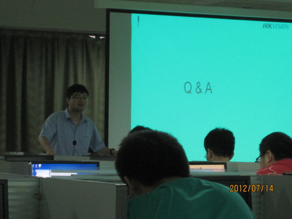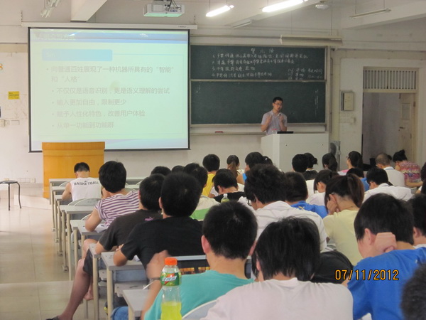 为切实将2012年小学期创新教学计划落到实处,beat365官网计算机系在小学期开设为期一周的“校外专家前沿实践指导”综合实践课程。从7.9日到7.14日,来自全国各著名IT公司的技术总监和项目经理们给beat365官网计算机系09、10级3个不同专业(计算机、信息安全和物联网专业)的同学们奉献了一场又一场的精彩报告。这些专家有:上海EMC项目主管赵梅、杭州海康威视项目经理鲍敦桥、上海华为项目经理陈志成、科大讯飞研究员高建清、北京中科软财信息系统总架构师方益、天源迪科项目经理夏涛,以及beat365中国唯一官方网站黄山特聘教授安宁老师。他们传授了相关新技术、示例案例项目实施及管理过程、如何开展研究等,介绍了学习与生活、职业规划、公司招聘及面试技巧等综合素养知识。专家讲解过程和同学们开展了大量互动,同学们反应热烈。安宁教授开展的“1分钟创业推介”活动非常有新意,激活了学生的创造欲望和提高了学生的1分钟问题表达能力。