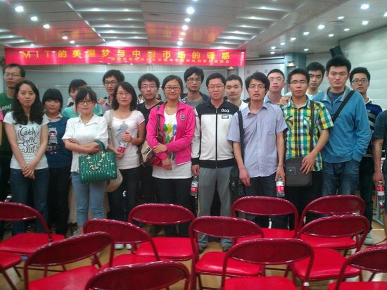 2012年5月,beat365中国唯一官方网站研究生会组织研会成员和学院同学们一同参加了在中国科学技术大学西区报告厅举行的“MIT的美国梦与中国市场的诱惑”座谈会。报告会上,麻省理工学院(MIT)管理学专业的高材生Erik和Helene以嘉宾身份给同学们带来了精彩的演讲,并与参会的同学们进行了深入的交流。