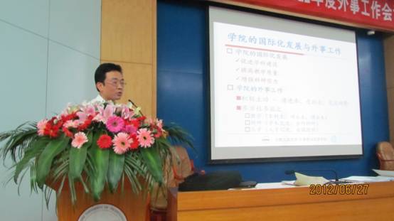 作为对外交流优秀学院代表,杨学志副院长代表学院向大会做学院外事工作汇报。杨学志教授将学院的外事工作概括为请进来和走出去,分别从这两个方面进行了汇报。请进来包括邀请海外学者、引进海外人才和培养留学生,走出去包括参加国际会议及国际交流、教师研修——博士后和访问学者、联合培养博士、参加国际竞赛。最后对学院未来的外事工作进行了展望,受到代表的一致好评。