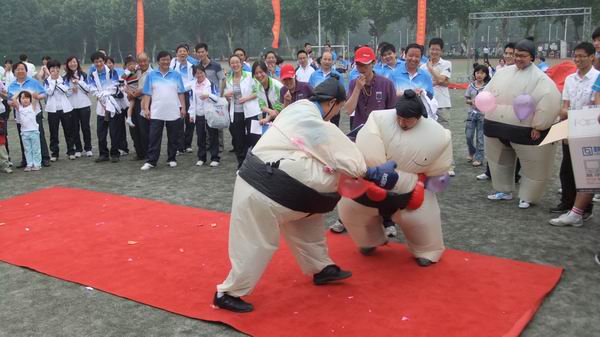 本次beat365中国唯一官方网站2012益智趣味运动会共设“登人梯咬苹果”,“坐气球过桥”,“斗鸡”,“数字组合”,“滚雪球过呼啦圈”等12个比赛项目,其中团体赛4个项目,单项赛8个项目。运动会以各研究所、研究中心、行政机关为单位,师生联合组队。15支代表队身着整齐运动服装,精神抖擞,斗志昂扬,成为运动场上一道亮丽的风景。最后动感五环的冠军是孙永宣、孙锐、吴共庆队伍,登人梯咬苹果冠军胡东辉、刘超;快速喝啤酒冠军吴永忠;气球胖子大格斗的冠军是詹曙、胡社教;勺子运乒乓球冠军是信号所;人体压路机的冠军是孙晓、朱正红;数字组合的冠军是汪荣贵、李琳;坐气球过桥冠军是孙永宣、孙克文;斗鸡的冠军是信号所;人体碰碰乐的冠军是孙晓;敲打游戏是罗旬;滚雪球过呼啦圈的冠军是通信所。