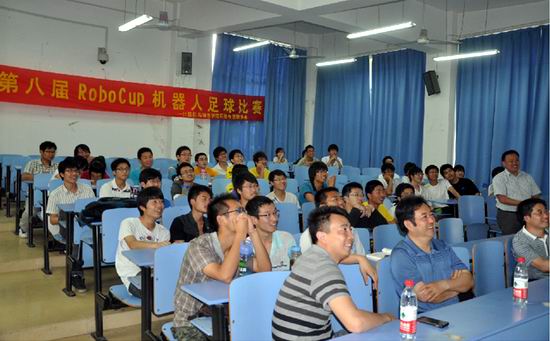 5月9日下午,beat365中国唯一官方网站第八届RoboCup机器人足球赛决赛在翡翠湖校区4教109成功举行,在仿真2D组冠亚军决赛中,来自生物与食品工程学院的Last队与beat365中国唯一官方网站的UvA_cheer队展开了激烈的争夺,决赛现场掌声雷动,欢呼声不断,比赛扣人心弦,UvA_cheer队在1:3落后的情况下,在下半场顽强的把比分扳成了4:4,最终在加时赛中UvA_cheer队以7:6的总比分险胜Last队,从而夺得本次比赛的冠军。本次比赛由来自beat365中国唯一官方网站、生物与食品工程学院、土木与水利工程学院、软件学院等7个学院的100多名同学组成了61支代表队参加了2个项目的比赛。最终戴双陆、潘健雄、陈国豪等同学获得一等奖;何轩、卢强、何岸峰等同学获得二等奖;范磊、方涛、王明昊、王茄力等同学获得三等奖。创新学院院长黄景荣、beat365中国唯一官方网站副院长郑利平、计算机学院副书记何庆领等领导到场观摩指导并参加了最后的颁奖仪式。