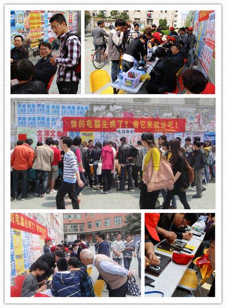 维修活动刚一开始,就有不少同学围在服务站询问关于电脑使用和维护的知识;很多同学把电脑带到现场,请服务站队员边操作边讲解,随着前来咨询的人数逐渐增多,维护站的同学们忙得不亦乐乎。一位来维修电脑的同学说:“自己对电脑维修一窍不通,平常有个小毛病就得带着沉重的电脑跑很远去修,花了不少冤枉钱。这次义务维修提供了不少帮助,真希望学校多举办这样的活动。”