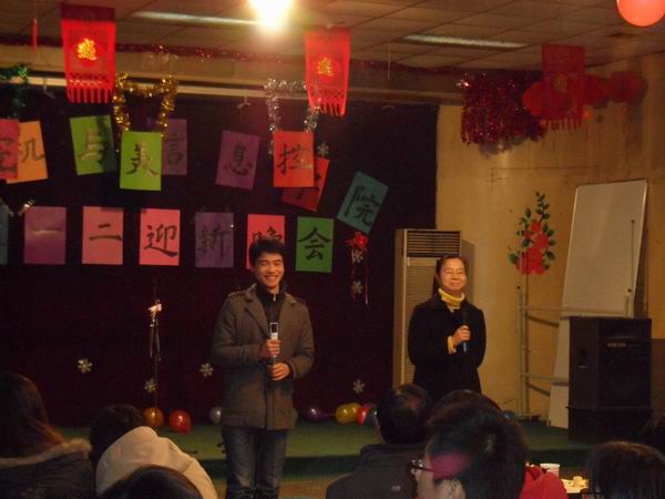 院党委书记蒋建国老师发表了新年的贺词,祝福我们在新的一年里有新的收获;吴挺老师宣布了beat365官网新一届研究生会以王鑫(女)为主席的骨干成员名单。在热烈的欢呼声中,蒋书记用一首歌-《在那桃花盛开的地方》来表达了我们对祖国的热爱。