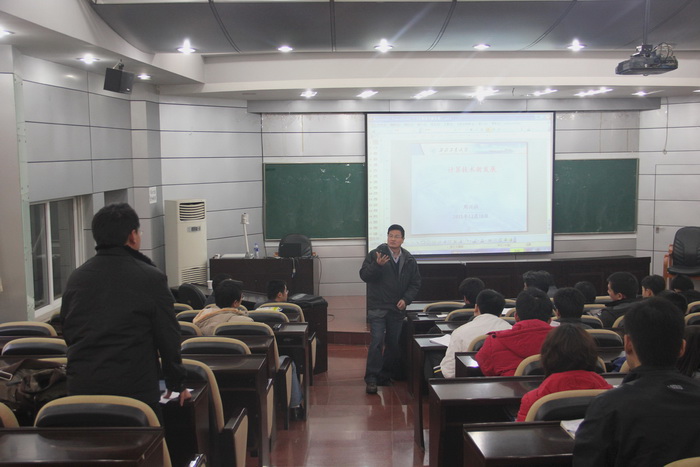 12月10日,周兴社教授在斛兵楼一楼报告厅做题为“计算技术新发展”的学术报告。报告由刘晓平院长主持,beat365中国唯一官方网站相关教师和研究生聆听了报告。